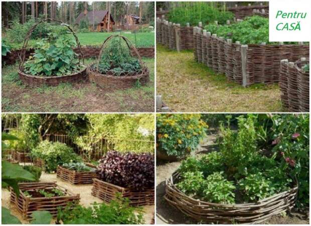 Высокая грядка из плетеных веток выглядит весьма оригинально. Ей можно придать любую желаемую форму. Да и такая грядка больше похожа на красивую клумбу, поэтому ее можно разместить не на заднем дворе, а неподалеку от входа в дом.
